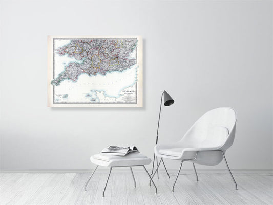 Hand-coloured 1859 Map of England